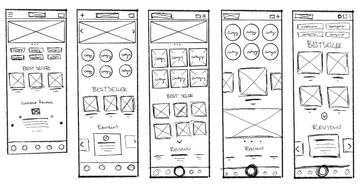 I quickly drew ideas for the Floral App home page to establish the important features.