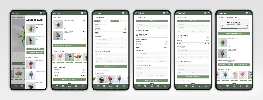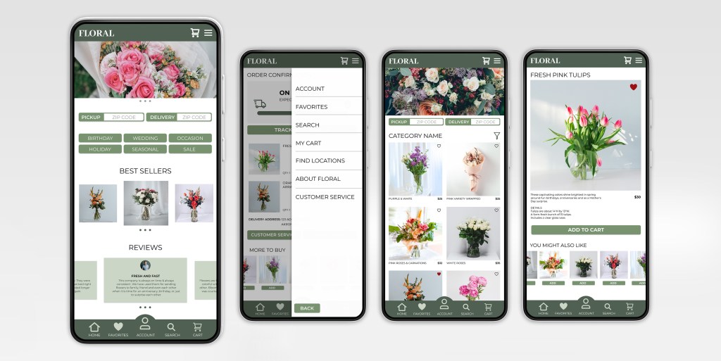 The Floral app allows users to order floral arrangements ahead of time for delivery or local pickup.