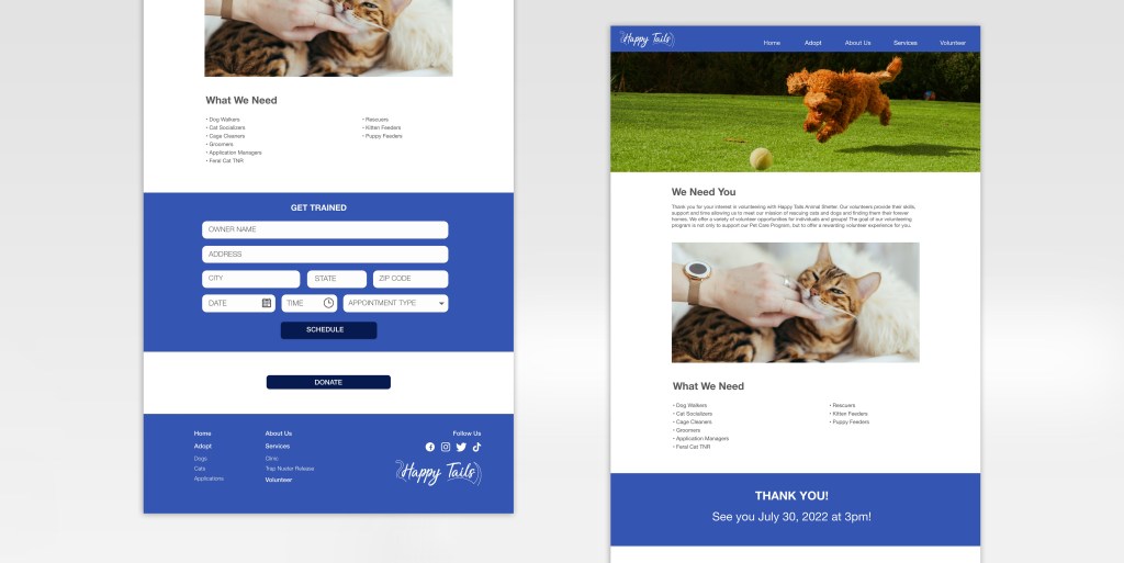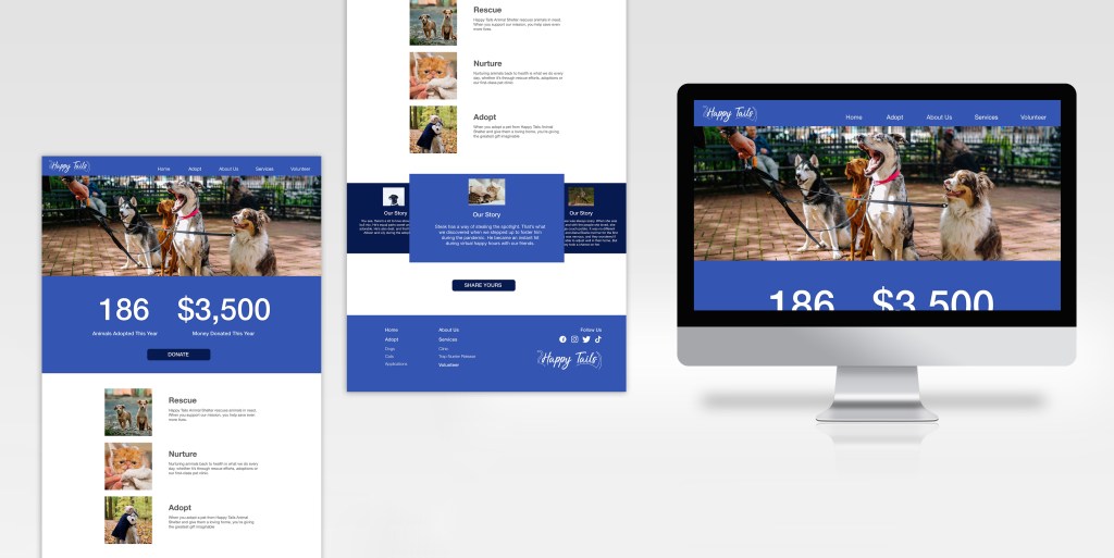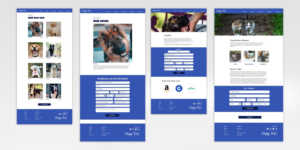 The Happy Tails Animal Shelter Website was designed in 2022 as a way for users to find adoptable dogs or cats online.