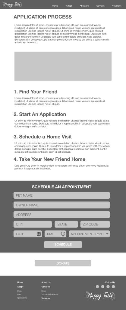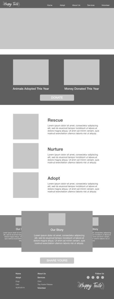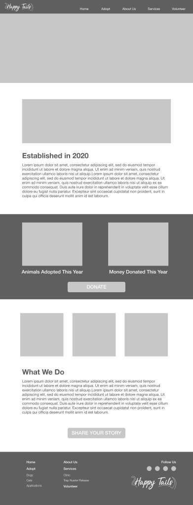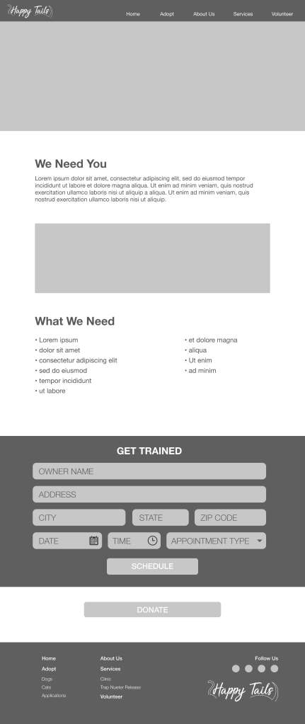 Happy Tails Animal Shelter Wireframes