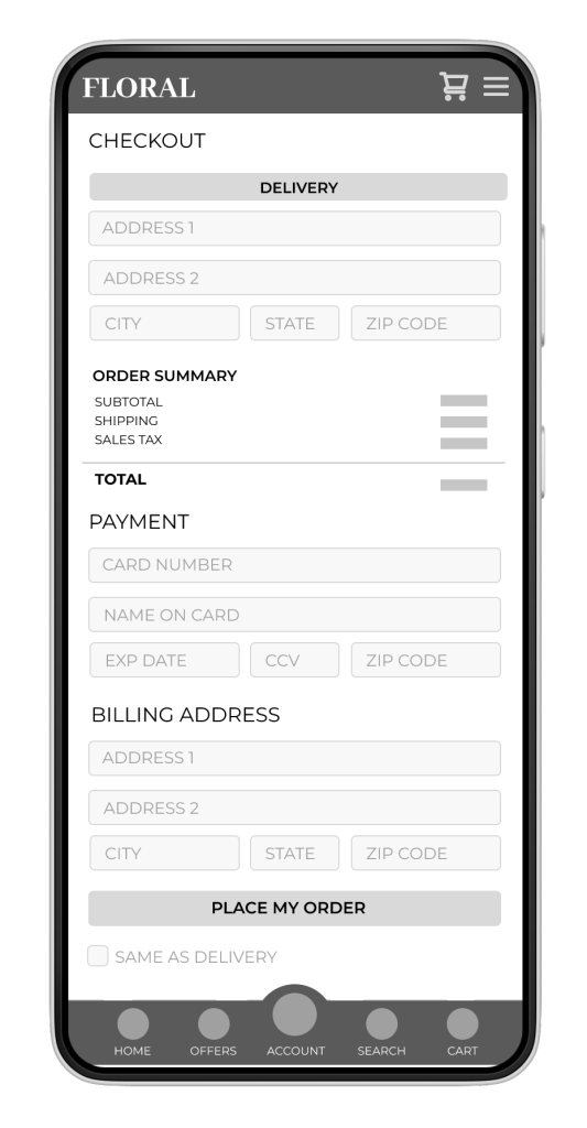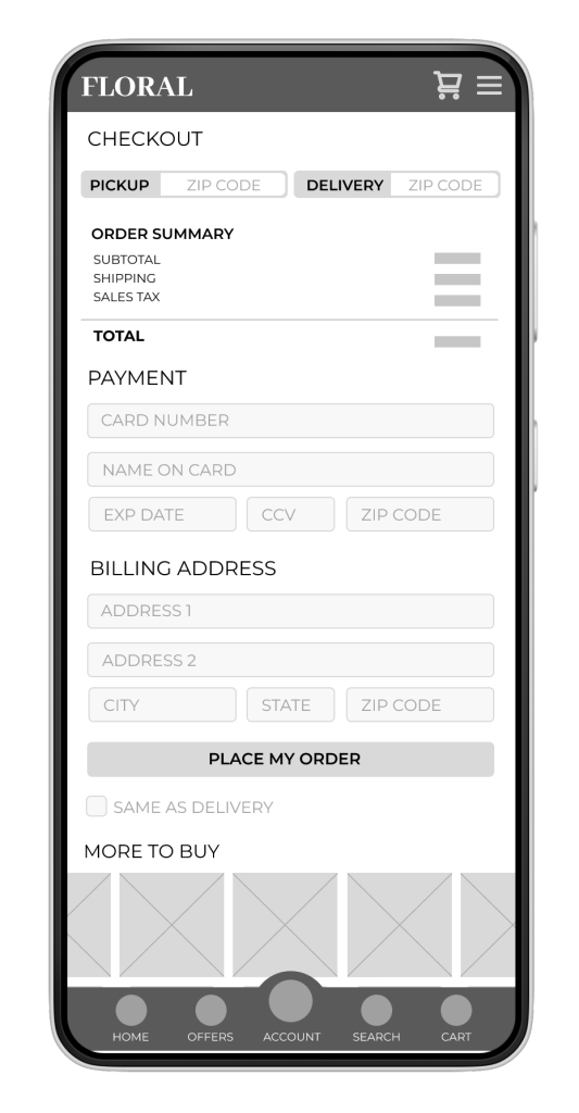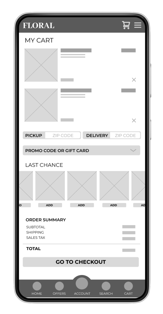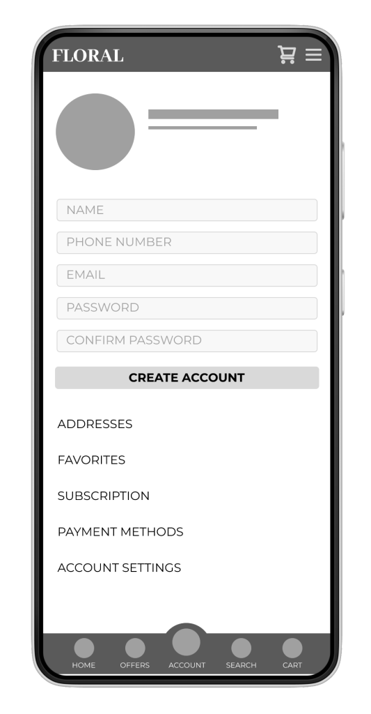 Floral App Wireframes